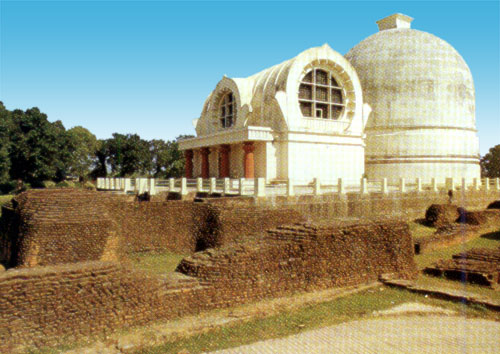 Tại nơi đây có rất nhiều tàn tích của những toà tháp và đền đài có ghi ngày vào khoảng thế kỷ thứ 3 BCE và thế kỷ thứ 5 CE là thời gian sự thịnh vượng lên đến tột định. Vị hoàng đế Ashoka của triều đại Mauryan được biết đã góp phần đáng kể vào việc xây dựng thánh tích này.