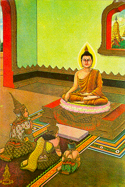Ra-Hầu-La đến hầu gặp Phật, Mong được phần gia sản cha ban, " Ta đây cho phép xuất gia, Là di sản quư không ǵ sánh hơn"