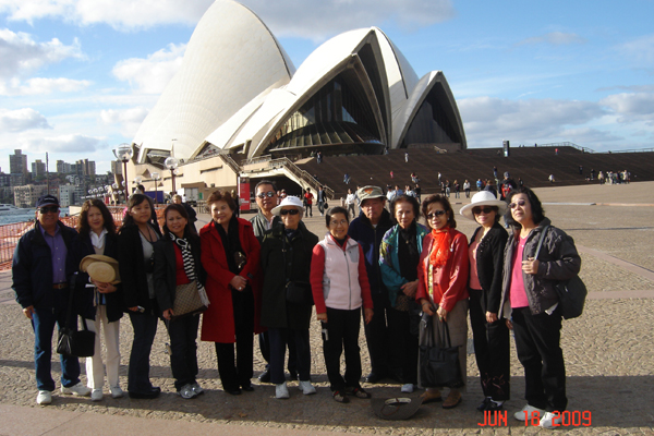 Ngày 19 tháng 6. Xe bus đưa chúng tôi thăm Olympic Stadium là nơi đã tổ chức thế vận hội mùa hè năm 2000. Tại nơi đây chúng tôi chụp một số hình làm lưu niệm. Chiều chúng tôi đến thăm toà nhà Sydney Opera House còn gọi là nhà Cánh Buồm. Với lối kiến trúc những cánh buồm bộc gió ngoài khơi rất lạ mắt và đã thu hút rất nhiều du khách trên thế giới đến thăm. Đứng tại quãng trường của toà nhà chúng tôi có thể nhìn thấy cảng Sydney Harbour với cây cầu bắt ngang và xa xa là nhiều toà cao ốc xây dựng ven cảng, xe cộ qua lại nhộn nhịp tạo nên một hình ảnh thanh bình của một xứ sở văn minh. Mái nhà Cánh Buồn được lợp bằng 1.056 triệu viên ngói bằng đá màu trắng sản xuất tại Thụy Điển, vì thế nhìn từ xa thấy giống như những cánh buồm màu trắng. Mái ngói không hề bị bụi thời gian làm bẩn và cách thiết kế gió biển có thể thổi luồn vào bên trong. Quãng trường của toà nhà rất đông du khách thăm viếng, chúng tôi những người trong phái đoàn rất hiếu kỳ với toà nhà Cánh Buồm này, và đã chụp rất nhiều hình ở đây.